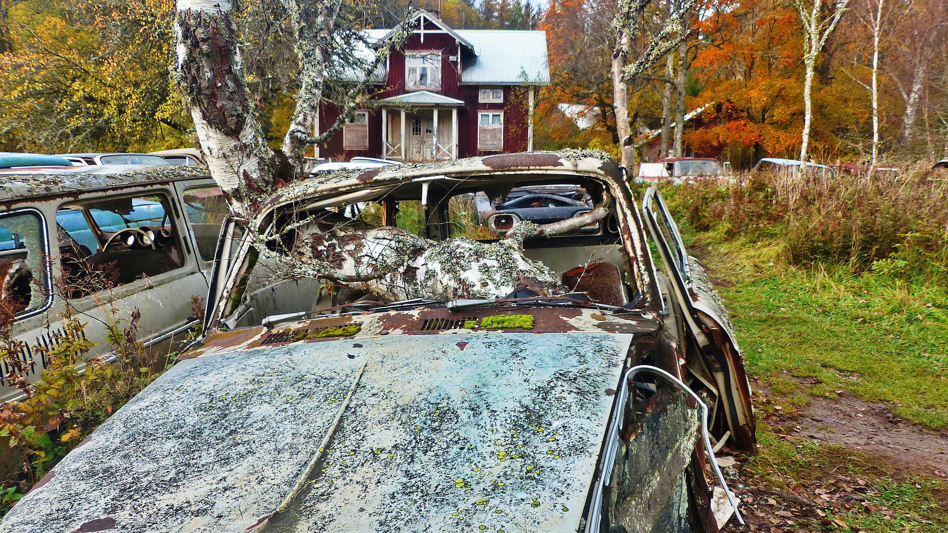 Während unserer Schweden-Tour 2019 haben wir den Autofriedhof Kyrkö Mosse besucht. Das war schon sehr beeindruckend, aber nichts gegen das, was wir dann 2023 auf unserer Tour in Båstnäs sahen.