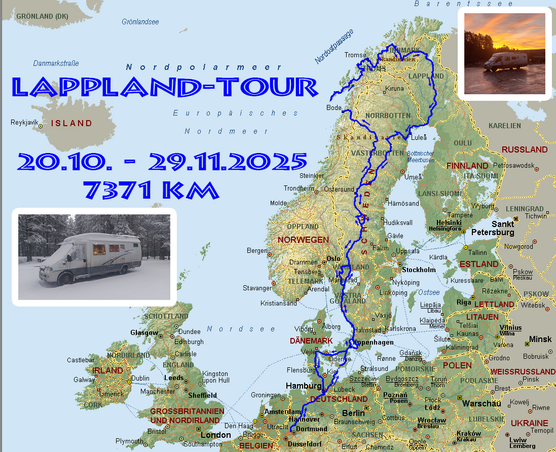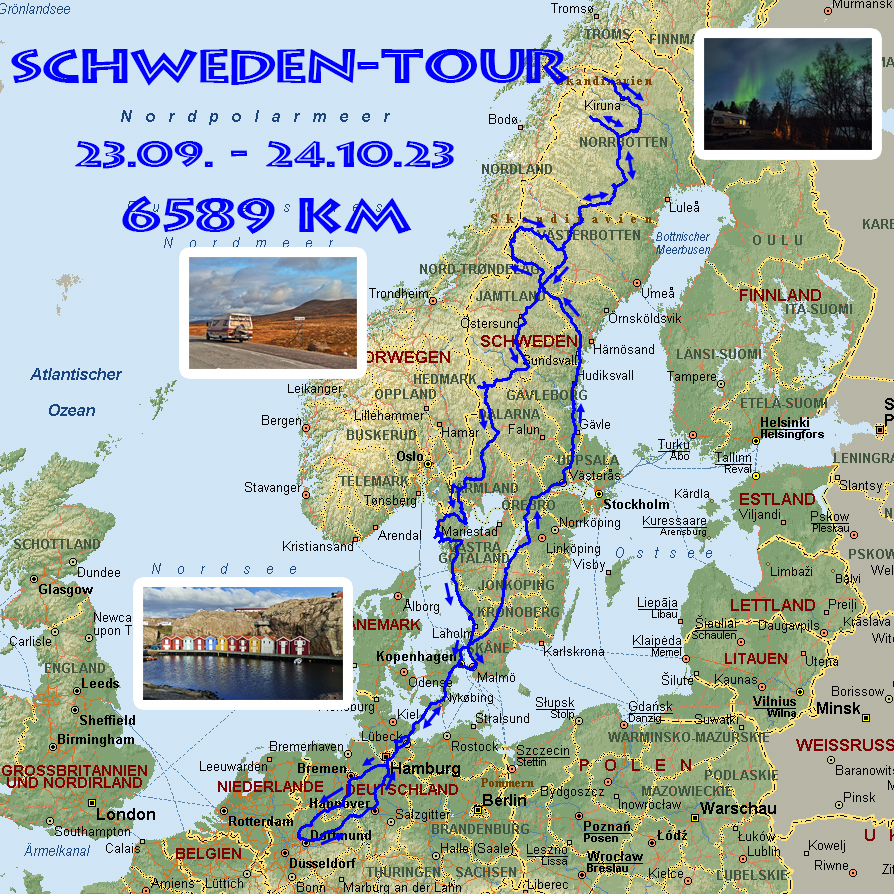 Da sie uns unter den Rädern des Hobby 600 noch fehlte, war sie Ziel unserer Herbsttour 2023. Darüber hinaus ging es weiter nach Kiruna und Abisko. Leider zwang uns ein früher Wintereinbruch dann zur vorzeitigen Rückfahrt. Dafür genossen wir dann noch die touristenarme Zeit in Bohuslän, wo im Sommer der Bär tanzt.