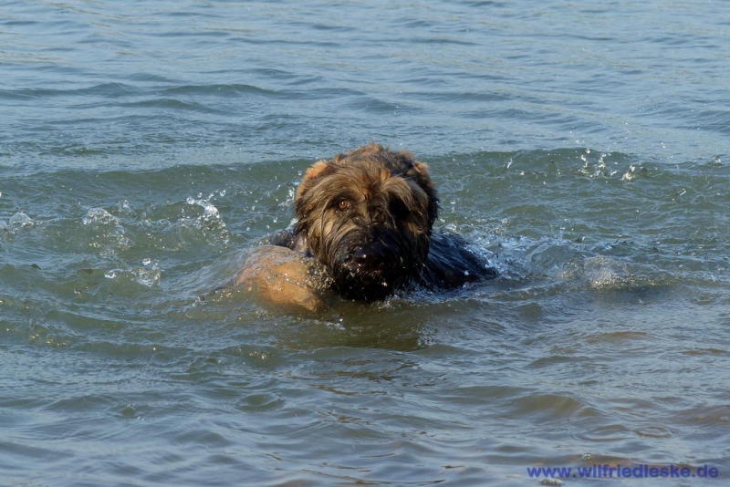 Ein kleiner Hund muss viel lernen und je eher man damit anfängt, desto eher kann er sich daran gewöhnen. So haben wir mit Amarok am vergangenen Wochenende die erste Wohnmobiltour unternommen. Nicht weit, aber auf einen schönen ruhigen Stellplatz in der Nähe eines Baggersees. Schlafen im und Aufenthalt am Wohnmobil waren für den 16 Wochen alten Bouvier absolut kein Problem. Am schönsten waren aber die morgendlichen Spaziergänge an den See. Natürlich suchte der kleine Kerl auch den Kontakt zum Wasser und schwamm seine ersten Meter.