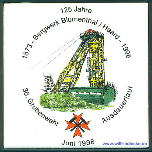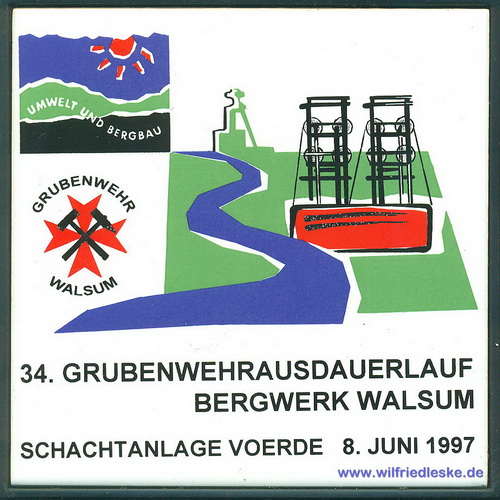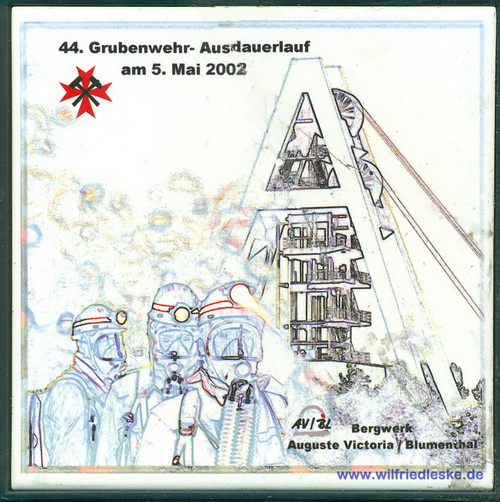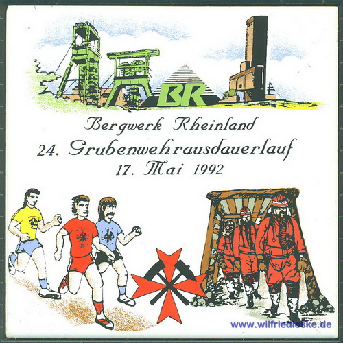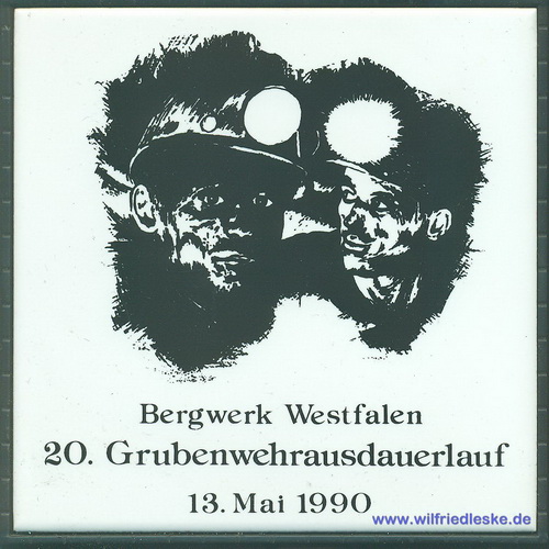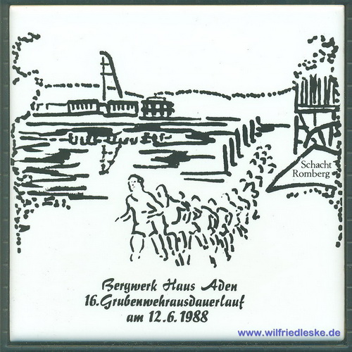 Zu meiner aktiven Zeit als Mitglied der Grubenwehr musste ich körperlich immer fit sein. Da gehörte es einmal im Jahr zum guten Ton am Grubenwehr-Ausdauerlauf teilzunehmen. Der Lauf über 10 km wurde jedes mal von einer anderen Grubenwehr ausgetragen. Die Strecke musste in einer Zeit unter 70 Minuten bewältigt werden. Zur Erinnerung bekamen die Läufer jedes Mal eine Kachel.