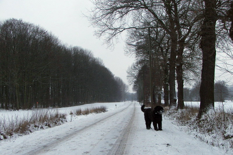 Da macht es richtig Spaß, zweimal am Tag mit dem Hund raus zu müssen. Am schönsten ist es morgens, wenn die Landschaft noch so unberührt aussieht. Giovanni hat auch besonderen Spaß an den Spaziergängen. Die Nase ist nur auf dem Boden. Die Gerüche müssen viel intensiver sein und man sieht die markierten Stellen jetzt ja auch. Entsprechend sieht sein Bart nach einem Spaziergang auch aus. Aber auch die Pfoten sind voller Eiskugeln. Zwischendurch legt er sich dann schon mal hin und versucht die Kugeln abzubeissen. Da hilft nach dem Spaziergang nur ein Eimer mit warmen Wasser. Damit werden nicht nur die Kugeln aufgetaut. Auch das Salz und Granulat wird aus seinen Pfoten gewaschen.