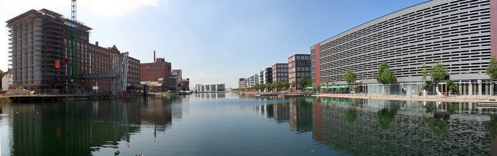 Um die Zeit zwischen den Nächten zu überbrücken, besuchten wir am Samstag den Innenhafen von Duisburg. Hier wurde (wird) ein altes Hafengebiet zu einem aktiven Stadtteil umfunktioniert. Sieht auf jeden Fall interessant aus.