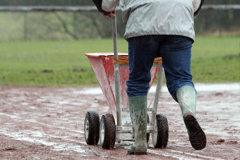 Gestern sollte zum ersten Mal in diesem Jahr wieder gespielt werden. Die Stadt hatte zumindestens die Hartplätze freigegeben. Das Team von FC 96 Recklinghausen II sollte zu Hause gegen den Aufsteiger Titania Erkenschwick antreten. Aber schon das Markieren des Platzes war nicht einfach. Der Boden war zu naß und saugte die Kreide sofort in sich auf.