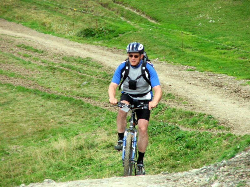 Die letzte Etappe sollte die Königsetappe werden: 2000 hm hoch und 2700 hm runter. Das gute an ihr war, dass die großen Anstiege alle im ersten Drittel der Etappe lagen. Wie immer starteten wir um 9:00 Uhr. Kurz hinter Dimaro bogen wir auf einen Forstweg ab. Durch den Wald ging es nun stetig bergauf. Unterwegs überholten uns drei Mountain- Biker, um uns eine halbe Stunde später in einem Höllentempo wieder entgegen zu kommen. Auch eine Art Frühsport zu betreiben.