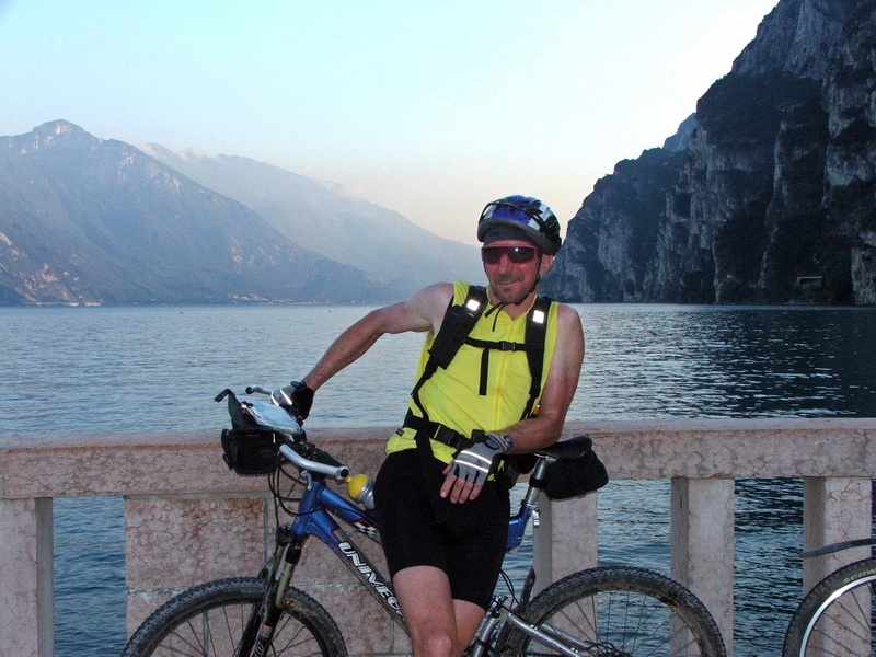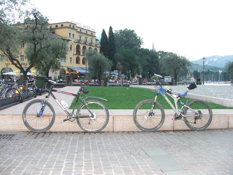 Über Asphalt ging es nun hinunter nach Ponte Arche und noch einmal hinauf auf den Passo di Ballino. Dort begann dann die letzte Abfahrt nach Riva des Garda. Auf den kurvenreichen Straßen hieß es nur auf den Verkehr achten und auf den letzten Metern nicht noch stürzen. Und dann der erste Blick auf den Gardasee: Anhalten, Foto machen und Ulrike anrufen. Gleich sind wir da!