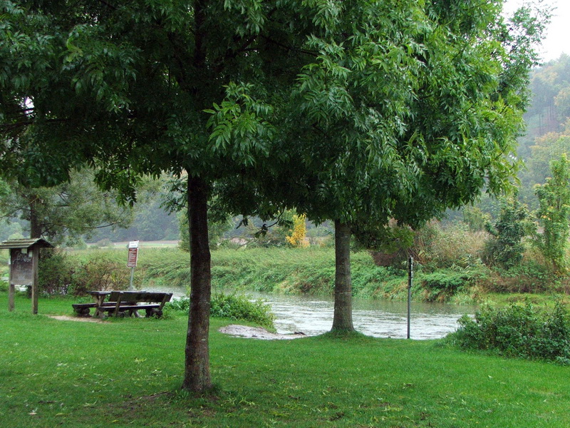 Leider änderte sich das Wetter am nächsten Tag auch nicht und da das Ende des Urlaubs nahte, hieß es Regenzeug anziehen- und durch. Bei strömenden Regen fuhr ich die 46 km von Eichstätt nach Beilngries. Vorbei am Römerkastell und über die historische Brücke bei Pfünz, durch Walting und Pflanzpaint nach Gundolding. Hier fand ich bei einem Zeltplatz einen Unterstand, sodass ich wenigstens einmal die Kamera rausholen und ein paar Bilder schießen konnte. Als ich an dem auf einem Felsen thronenden Schloss Arnsberg vorbei kam, ließ der egen Bilder nicht zu.