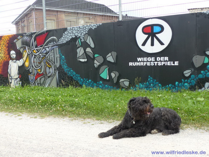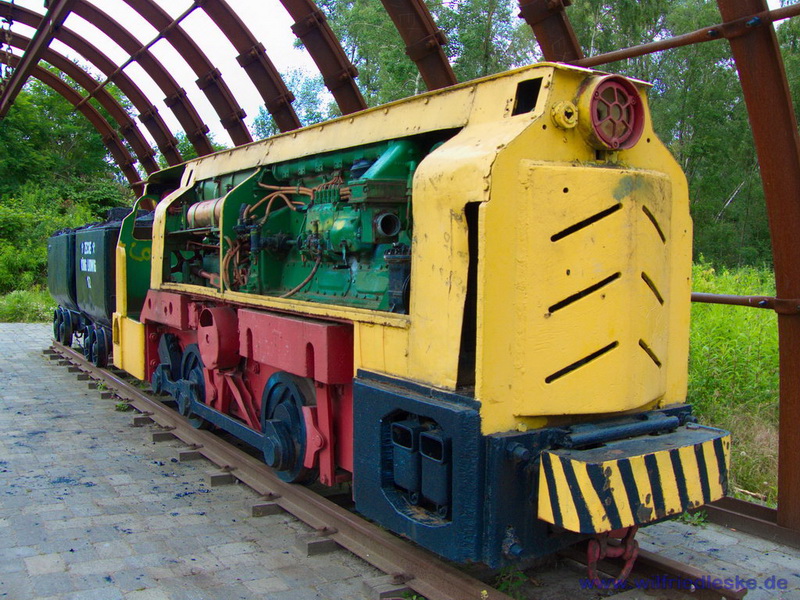 An einer Stelle des Radwegs hat man ein Stück Grubenausbau mit einer original Grubenlokomotive (mit Dieselantrieb) und zwei Loren aufgestellt. Erinnerung an die Bergbaugeschichte. In diesem Bereich wurde die alte Zechenmauer kunstvoll mit Graffitis bemalt, natürlich alles Bergbaumotive. Ein toller Punkt für die Rast während der Radtour.