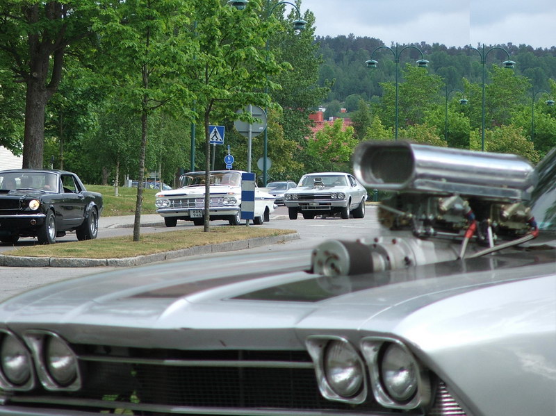 In Härnösand steuerten wir die Stadtmitte an. Giovanni brauchte etwas Bewegung und hier sollte es eine schöne Altstadt geben. Zwischenzeitlich kam auch die Sonne durch und es war Cabriowetter, im wahrsten Sinne des Wortes. Wir staunten nämlich über die vielen Oldtimer, zum Großteil Amischlitten ohne Dach, und die eleganten Leute darin. Bis wir dahinter kamen, auch hier wurde Student 2009 gefeiert. Nur auf andere Art - ländlich konservativ halt. Die Abiturienten wurden in Oldtimern oder anderen chicen Nobelkarossen durch die Stadt chauffiert. Im Gegensatz zu ihren Kollegen in der Hauptstadt trugen sie schwarze Anzüge bzw. elegante Abendkleider. Vor der Kirche gab es eine regelrechte Präsentation der Abiturienten. Immer und immer wieder fuhren sie an der Menge vorbei und wurden von den Zuschauern beklatscht. Zwei junge Männer tanzten etwas aus der Reihe. Sie fuhren mit einem Tandem - der Umwelt zuliebe.