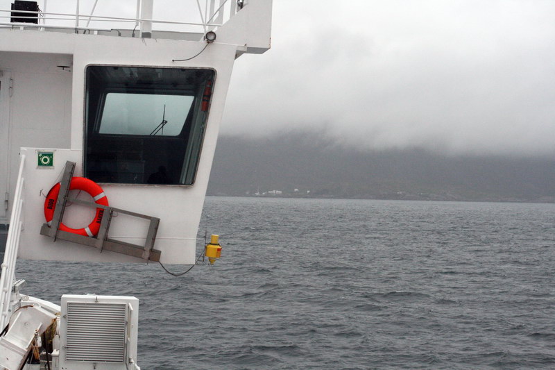 Gegen Mittag erreichten wir Bodø. Zunächst fuhren wir in das Zentrum, um auch noch etwas einzukaufen. Leider begann es jetzt zu regnen. Am Fährhafen sahen wir die „Richard With" der Hurtigruten auslaufen. Als unsere Fähre einlief waren die Wartereihen gut gefüllt. Wir hatten Glück und bezahlten nur 704 NKR für die Überfahrt; Fahrzeug bis 6,00 m. Dafür hatte das Personal wohl Anweisung, die Fahrzeuge ganz dicht zusammenzustellen. Bei uns war es zu dicht, denn wir konnten die Türen kaum öffnen und Ulrike kam gar nicht raus. Als ich das Personal darauf aufmerksam machte, mussten alle Fahrzeuge hinter und neben uns wieder zurücksetzen und wir wurden anders eingewiesen. Ironischer Weise war die Fähre aber gar nicht voll und im hinteren Bereich war noch genügend Platz. Weiß der Himmel, warum man uns vorne so dicht zusammengestellt hat.