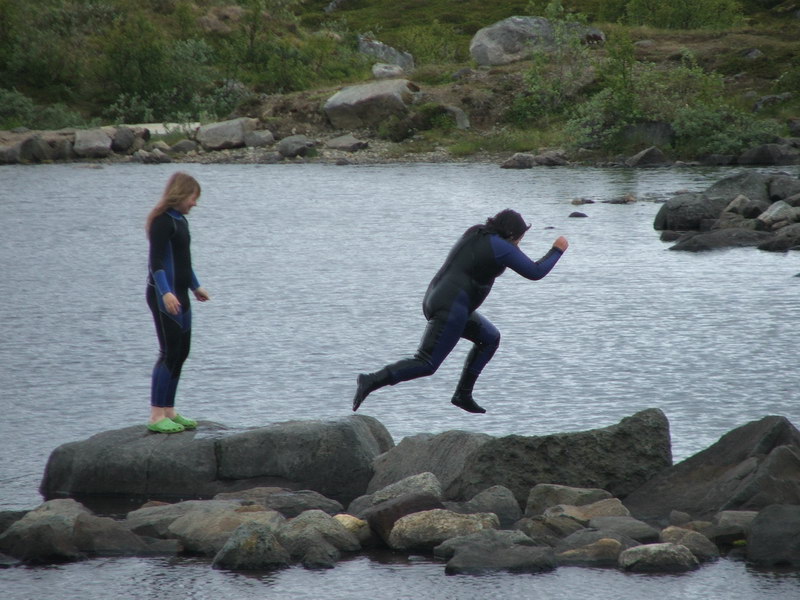Wir fuhren einmal durch das Dorf und parkten unser Wohnmobil dann an einem See. Von hier aus wanderten wir durch Bleiksmorenen, ein Sumpf- und Heidegebiet, bis zu dem Vogelfelsen und von dort am Strand wieder zurück. Als wir den See wieder erreichten, konnten wir die Dorfjugend beim Schwimmen beobachten - im Neoprenanzug. Wir hatten eine Lufttemperatur von 9°C. Das Wasser dürfte aber auch nicht wärmer gewesen sein.