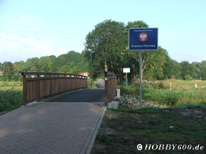 Wir waren aber auch nicht weit von der Grenze entfernt. Bei dem Morgenspaziergang wechselten wir mal kurz auf die andere Seite des Torfkanals und waren in Polen. Natürlich kann man nicht auf Usedom gewesen sein, ohne Ahlbeck und Heringsdorf zu besuchen. Da unser Wohnmobil aber so schön am Wasser stand, fuhren wir mit den Rädern dort hin. Es gab zwei mögliche Wege: den hügeligen quer über die Insel oder den flachen durch Polen. Klar, wir haben den flachen gewählt und konnten uns so auch einen kleine Eindruck von Swinemünde verschaffen.