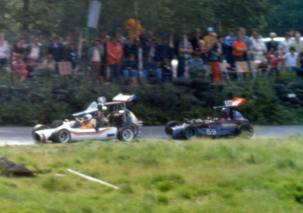 Die anderen Bilder zeigen Rennszenen der Midget-Klasse. Diese Formel-ähnlichen Flitzer kamen zum größten Teil aus den Niederlanden bzw. von der Insel. Für damalige Verhältnisse steckte da aber auch schon sehr viel Geld drin.