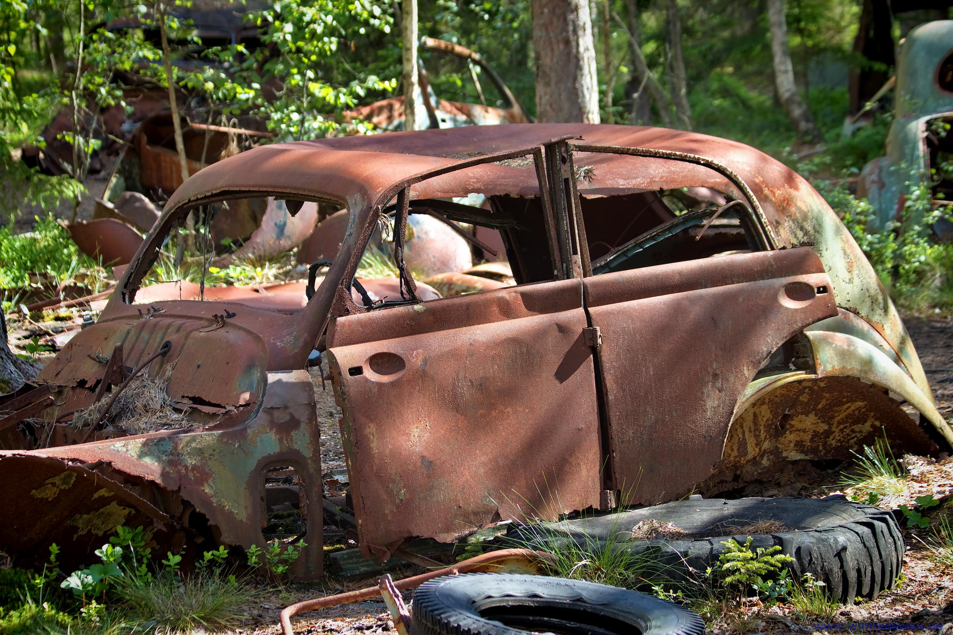 Mittlerweile ist der Autofriedhof ein beliebtes Ausflugsziel geworden. Wenn man durch den Wald streift, wechseln die Gedanken zwischen schönen Formen und zur Vergänglichkeit der Technik.