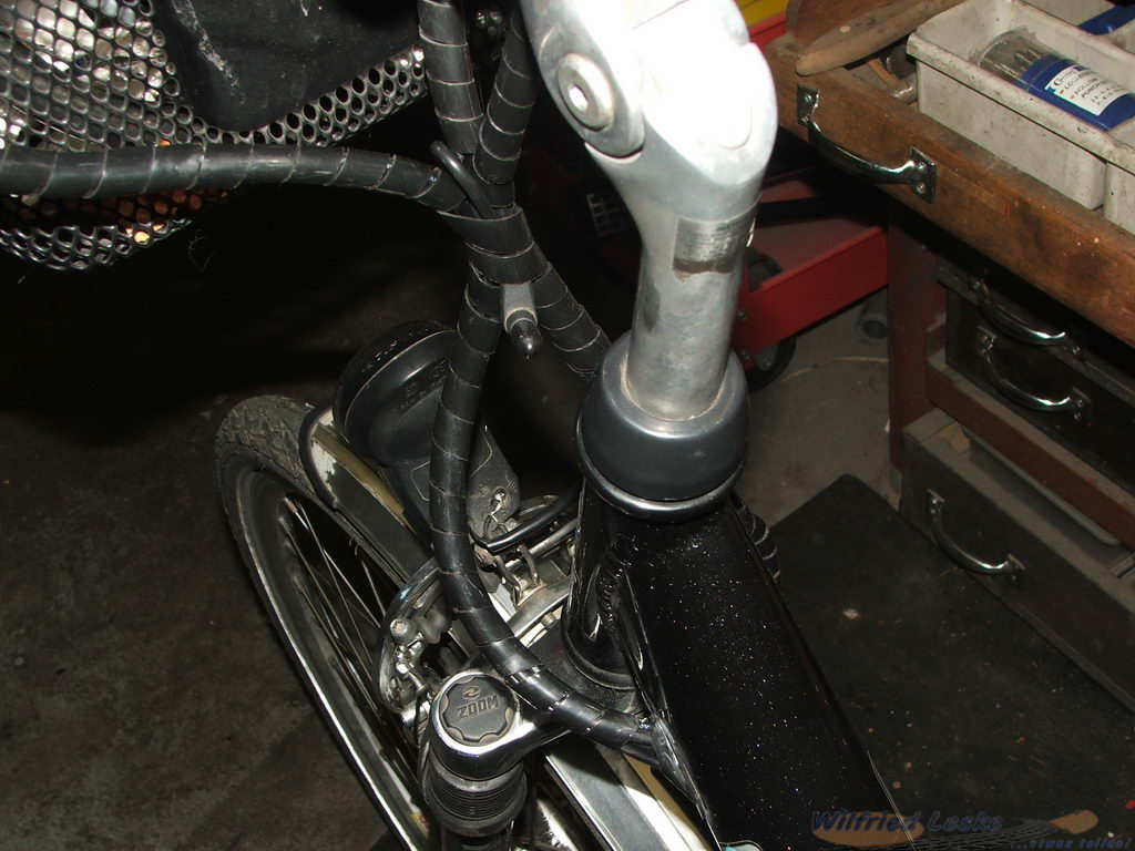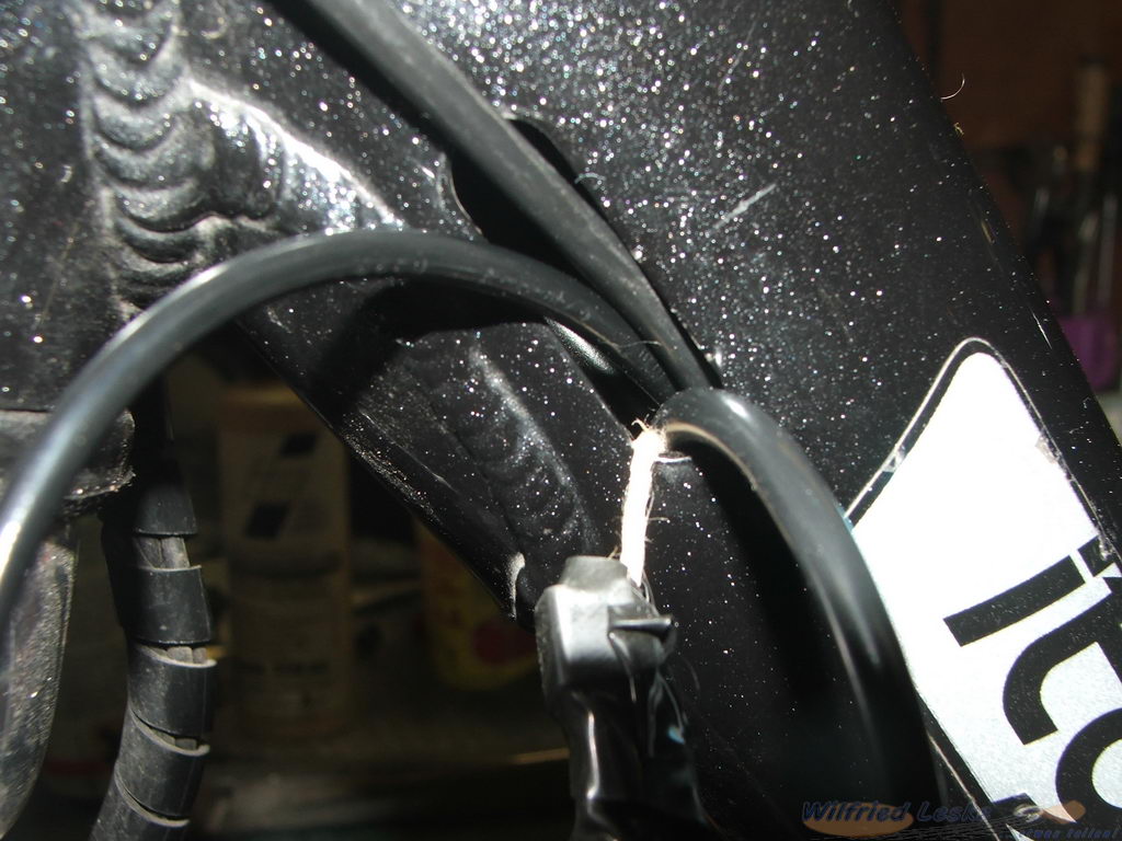 Die elektrischen Leitungen zum Display werden bei dem Pedelec durch den Rahmen verlegt. Deshalb muss man bei der Demontage der alten Leitungen daran denken, unbedingt Einziehhilfen (Paketband) anzuknoten und durch den Rahmen zu ziehen.