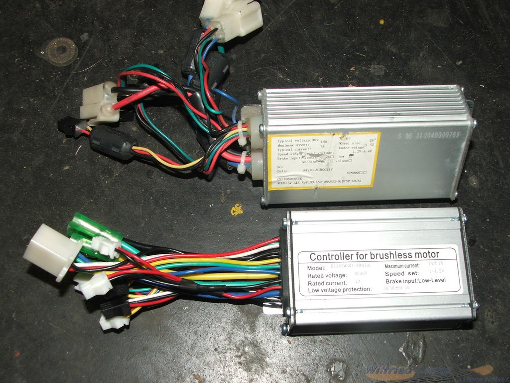Der neue Controller (Suzhou Kunteng KT36ZWSRT) war nicht nur etwas kleiner als der alte Controller, er hatte auch andere Steckanschlüsse für Akku und Motor. Der Händler hatte mir aber passende Stecker beigelegt und so konnte ich die Anschlüsse umbauen. Die verschiedenen Anschlüsse haben alle andere Stecker bzw. Farben, die in einer Zeichnung dokumentiert sind. Dann habe ich den Controller angeschlossen und zunächst nur mit Display und Daumenschalter den Motor angesteuert. Er lief! Der erste Schritt war getan.