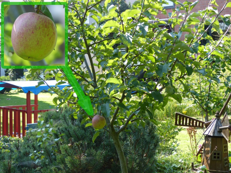 Vor vielen Jahren (es muss so 2009 gewesen sein) hatte ich bei aldi mal einen Apfelbaum gekauft. Der Stand da so einsam im Regal und keiner wollte ihn haben. Natürlich war der Preis reduziert und für 3 € hab ich ihn dann mitgenommen. Der Baum kam in unseren Garten und wurde im Laufe der Jahre einmal umgesetzt. Entsprechend wuchs er nur sehr zaghaft. Aber in diesem Jahr hatte er ein paar Blüten und endlich auch den ersten Apfel. ... und der sieht schon mal ganz gut auch. Wir lassen ihn noch etwas reifen und ich werde dann berichten, wie er geschmeckt hat.