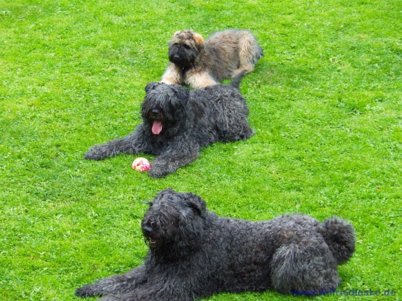 Der Bouvier des Flandres gehört zu den Hunderassen, die nicht haaren. Dafür muss ihr Fell regelmäßig getrimmt werden. Bei Amarok war dies nun mit gut sechs Monaten zu ersten mal der Fall. Eineinhalb Stunden musste der Kleine auf dem Tisch stehen.Während ich ihn beruhigte, gingen Frau und Tochter mit Schere und Schneidemaschine an sein Fell. Das Ergebnis kann sich sehen lassen. Mit Rücksicht auf den bevorstehenden Winter wurde er nicht ganz so kurz getrimmt. Haben sie toll gemacht, alle drei!