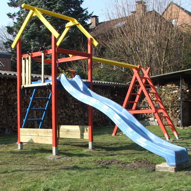 Aktuell erstelle ich in unserem Garten eine Spielanlage für die Enkeltochter. Natürlich wurde der Bausatz leicht modifiziert und es kam jede Menge Farbe ins Spiel. Heute konnte dann so etwas wie Richtfest gefeiert werden. Bis die Anlage komplett fertig ist, werden aber noch ein paar Tage vergehen. Vielleicht wird sie ja auch nie fertig, weil es immer was zum Anbauen gibt.