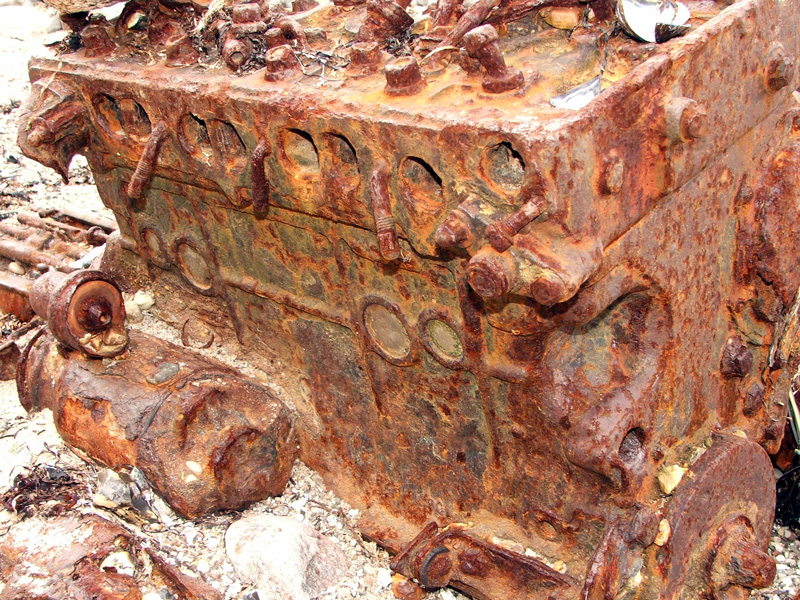In den vergangenen Tagen besuchten wir Schleswig-Holstein. Am Strand der Eckernförder Bucht machte ich während einer Hunderunde eine interessante Entdeckung. Da lag doch tatsächlich so etwas, was mal wie ein Auto aussah; jedenfalls ein paar Teile davon. Das war zunächst der Motor - ein 4-Zylinder Reihenmotor. Wasser, Sand, Strömung und wohl auch der Wind haben einiges an seiner Form verändert. Funktionsfähig ist er garantiert nicht mehr, aber er sieht interessant aus.