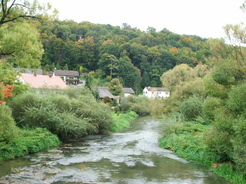 Bei Treuchtlingen wurde das Tal immer enger und Wälder tauchten vor mir auf. In der Stadt selbst vielen mir neben einem wunderschönen Wohnmobilstellplatz (in der Nähe des Thermalbades / Shell- Tankstelle) eine in einem Park aufgestellte Dampflok der BR 01 auf. Diese alte Schnellzuglokomotive erinnert an die Rolle des Bahnbetriebswerkes Treuchtlingen und an die Bedeutung der Stadt als Eisenbahnknotenpunkt.