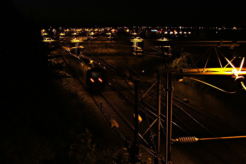 Nach Mitternacht erreichten wir den Fährhafen. Ein roter Vollmond strahlte über der Ostsee, so als ob er uns verabschieden wollte. Für längere Zeit würden wir keine Dunkelheit und keinen Mond mehr sehen. Während der Hunde-Gassi-Runde machte ich ein paar Aufnahmen vom Fährbahnhof der Eisenbahn. Die „M/F Tycho Brahe" brachte uns um 1:40 Uhr schließlich nach Schweden.