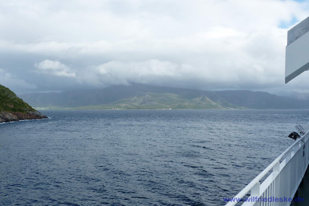 Am nächsten Morgen fuhren wir noch einmal zurück nach Sandnessjøen um einzukaufen. Danach ging es weiter nach Levang. Hier erwartete uns die nächste Fähre. Sie brachte uns nach Nesna. Der Himmel war heute immer noch bewölkt. Zwischendurch kamen aber immer größere blaue Flecken zum Vorschein. So umrundeten wir mit unserem Wohnmobil den Sjonafjord. Zwischendurch gab es immer schöne Aussichtspunkte, an den wir anhalten und die Aussicht genießen mussten.
