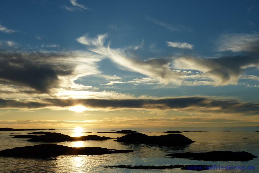 Heute wollten wir den Dorsch grillen, den wir gestern geschenkt bekommen hatten. Aber keine Chance. Der Wind blies den Gasgrill ständig aus, sodass wir den Fisch letztlich im Wohnmobil zubereiten mussten. Wider Erwarten hielt sich der Fischgeruch aber in Grenzen. Dafür schmeckte er umso besser. Unsere Hoffnung auf Mitternachtssonne wurde wieder nicht erfüllt.