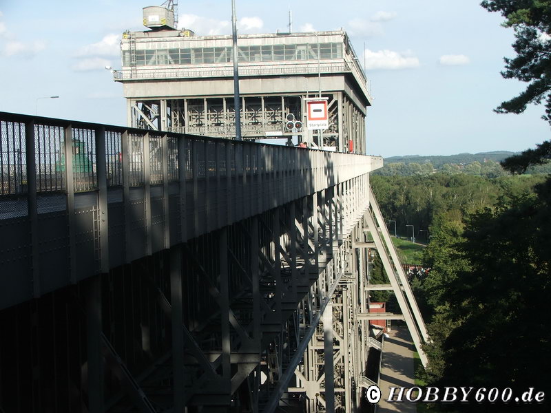 Das Bauwerk ist ein Paradebeispiel der Ingenieurbaukunst in Deutschland und begeistert jeden „Techniker“. Zunächst informierten wir uns im Besucherzentrum über die Bedeutung der Binnenschifffahrt im Allgemeinen und das Bauwerk im Speziellen. Anschließend benutzen wir den Serpetinenweg um uns das Bauwerk von oben anzuschauen. Wir hatten Glück und konnten das „Senken“ eines modernen Schubverbandes beobachten. Da der Trog für den Verband zu klein war, musste der Schubverband geteilt und einzeln abgesenkt werden.