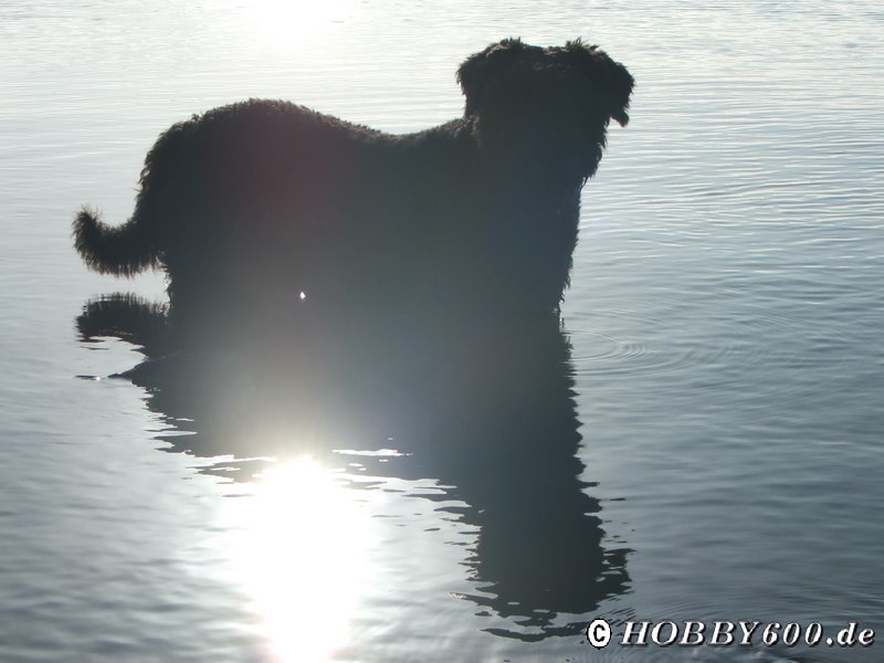 Aus dem Forum hatten wir wieder den Hinweis auf Kamminke am Stettiner Haff bekommen. Hier kann man auf einem Parkplatz unmittelbar am Wasser stehen. Wir fanden sogar noch einen Stellplatz in der ersten Reihe und konnten unmittelbar auf das Wasser schauen. Die Hunderunde entwickelte sich zwangsläufig zu einer Wasserrunde. Immer wieder Stöckchen suchen und ins Wasser werfen. Giovanni hatte seinen Spaß.