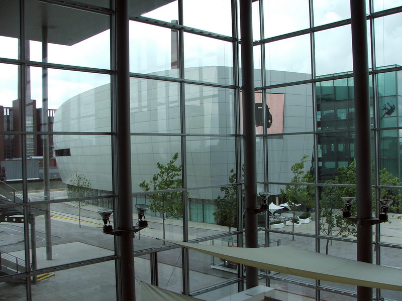 Wir erfuhren auch etwas über den Konzern und die verschiedenen Werke in aller Welt. So wurde unser Polo in Pamplona/Spanien gebaut und dann mit dem Schiff nach Emden transportiert. Von dort kam er mit dem Zug, gemeinsam mit dem Scirocco aus Portugal, dem Fox aus Brasilien, dem New Beatle aus Mexiko und dem Passat aus Emden nach Wolfburg. Hier wurden die Fahrzeuge gereinigt und die Übergabeinspektion durchgeführt. Dann kamen sie über eine überdachte Brücke in einen der beiden Glastürme. Dort stehen die Wagen maximal drei Tage. Dann werden sie ins Kundencenter gefahren und an den Kunden übergeben.